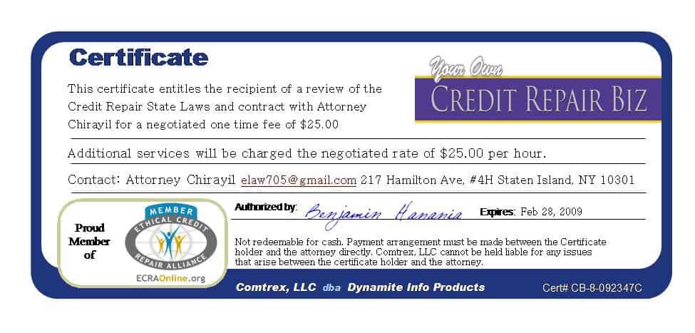 As a member of ECRA you also receive a listing in the public area of ECRA’s website where potential clients can search for ECRA members by state. The ECRA site is heavily promoted as the only organization to protect the consumer from unethical and "fly by night" Credit Repair companies.